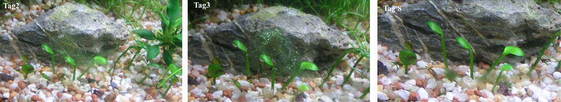 das Algen nicht sofort sichtbar absterben ist normal (die Zersetzung dauert